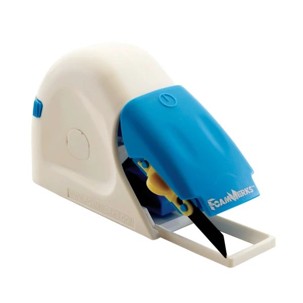 מכשיר לחיתוך אנכי של קאפה עד לעומק של 12.7 מ"מ. מתחבר לסרגל מקורי של לוגן או לסרגל הבטיחות הסגול Logan WC6001 FoamWerks Straight Cutterסרטון המלצת החברה היא להשתמש ברצועות קאפה, שנשארו מחיתוכים קודמים, מתחת למקום החיתוך